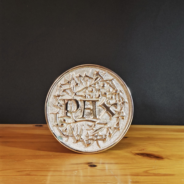 This Pax brede, used during Holy Mass to convey the Peace from the priest to the Choir, is a unique work of art, bearing the monastery's emblem. Cast in bronze and plated in silver, this unique piece, 14.5cm (5.7 inch) in diameter, comes with a velvet bag and a protective box.